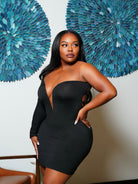 Long sleeve, sweetheart neckline, stretchy, and hugs your curves